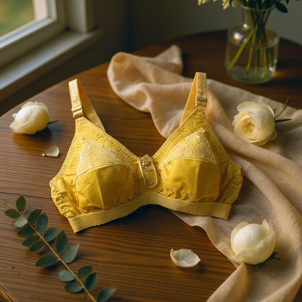 Bring brightness and elegance to your wardrobe with our Floral Lace Bra in Sunshine Yellow.